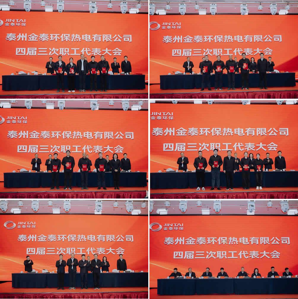 第四届职工代表大会第三次会议在激情而庄严的国歌声中正式拉开序幕。集团执行总经理徐振华从生产经营业绩、年度安全目标完成情况、主要负责人履职情况等向大会汇报2024年度安全生产工作情况,并对2025年进行工作部署。徐总提出,2025年是“三年规划目标”的关键年,更是公司高质量可持续发展的“攻坚年”。我们要以《金泰忠诚准则》为指引,攻坚重点工作,抓好安全保供、关注人才梯队建设、紧抓科技创新、服务用户、提升精神面貌这六个着力点,助力金泰公司在2025年再上新的台阶,为2026年三年愿景的收获之年夯实基础。集团副总经理王顺安宣布了2024年度各事业部、集团各部门、下属子公司先进部门、先进员工的名单,主席团成员逐一为大家颁发了荣誉证书。职代会上,先进代表们的发言振奋人心、热血沸腾,让大家感同身受、备受鼓舞。热电事业部执行总经理季佩生、建材子公司总经理张伟和鼎信子公司董事长周叶年分别向集团公司董事长递交2025年经营目标责任状、审计责任书。